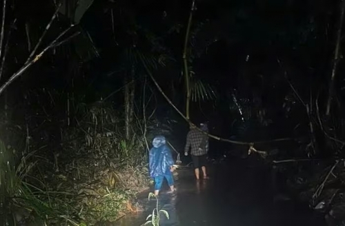 Mưa lớn kéo dài, nước suối dâng cao, nhiều đoạn đường bị sạt lở, chia cắt khiến việc tìm kiếm vô cùng khó khăn. Các tổ công tác phải băng rừng, vượt suối, soi đèn pin lội qua nhiều khu vực nguy hiểm để truy tìm dấu vết người mất tích.