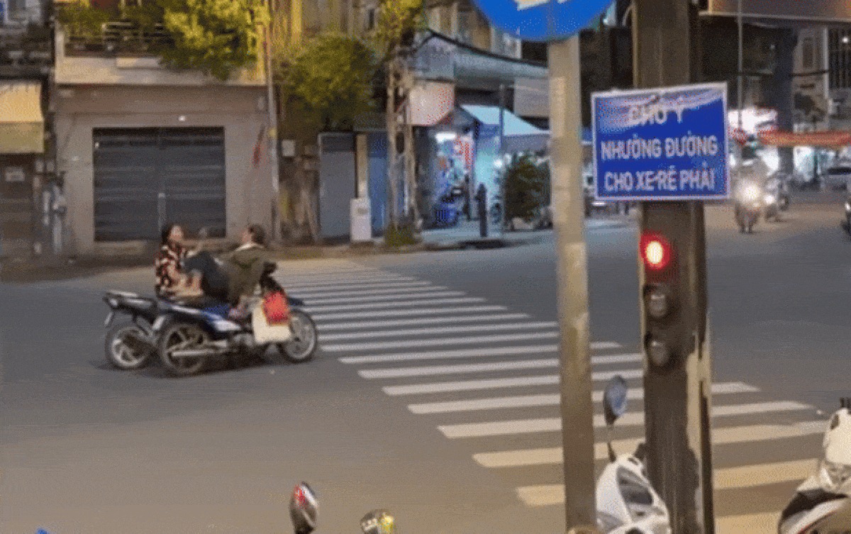 Hai người dừng xe giữa đường để nói chuyện khiến nhiều người bức xúc vì tiềm ẩn nguy cơ tai nạn giao thông.