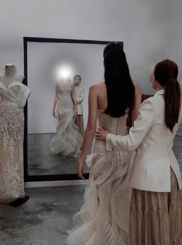 Hình ảnh được cho là hậu trường thử váy cưới của Phương Nhi (Ảnh: Linh Tra Nguyen) |