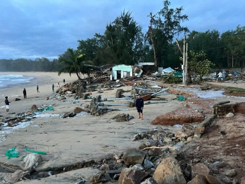 Triều cường dâng cao tàn phá nhiều công trình, nhà dân ven biển Quảng Ngãi |