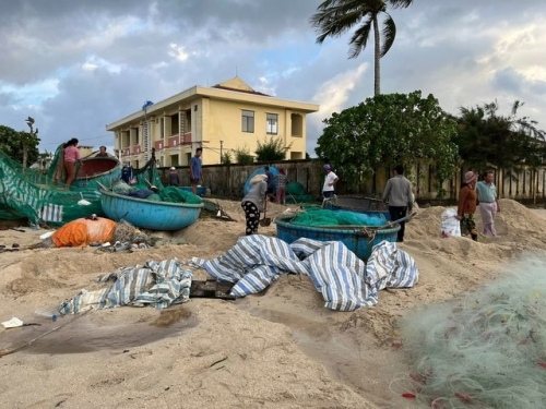 Người dân đặc khu Lý Sơn chuẩn bị ngư lưới cụ sau khi bão số 13 đi qua |