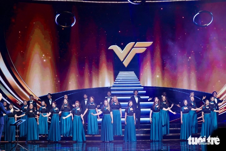 Nhạc trưởng Đồng Quang Vinh và dàn hợp xướng Hanoi Voices Choir với ca khúc “This Is Me” khép lại một đêm của cảm xúc, của tri thức VinFuture 2025, hứa hẹn một mùa giải mới VinFuture 2026 mang đến nhiều bất ngờ và hy vọng về một tương lai bền vững, thịnh vượng hơn nữa cho nhân loại qua khoa học công nghệ - Ảnh: NGUYỄN KHÁNH |