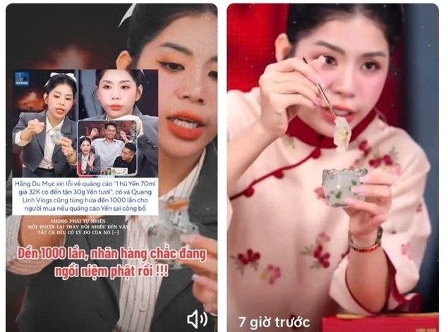 Hằng Du Mục, một KOL có 4,9 triệu lượt theo dõi trên tài khoản TikTok có tích xanh, vừa lên tiếng xin lỗi liên quan đến sản phẩm yến sào