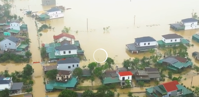 Cảnh ngập nặng ở Hà Tĩnh nhìn từ trên cao
