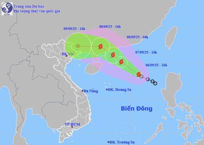Dự báo khoảng chiều tối nay 30-8, vùng tâm bão số 6 sẽ đi vào đất liền khu vực từ Nam Hà Tĩnh trở vào tới Bắc Quảng Trị.