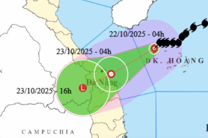 Bão số 12 dự kiến đổ bộ khu vực từ Đà Nẵng đến Quảng Ngãi trong ngày 23/10, với sức gió mạnh cấp 6, giật cấp 8. Dù suy yếu nhanh sau khi vào bờ, hoàn lưu bão kết hợp không khí lạnh và gió Đông sẽ gây mưa lớn diện rộng, kéo dài đến hết tháng 10.