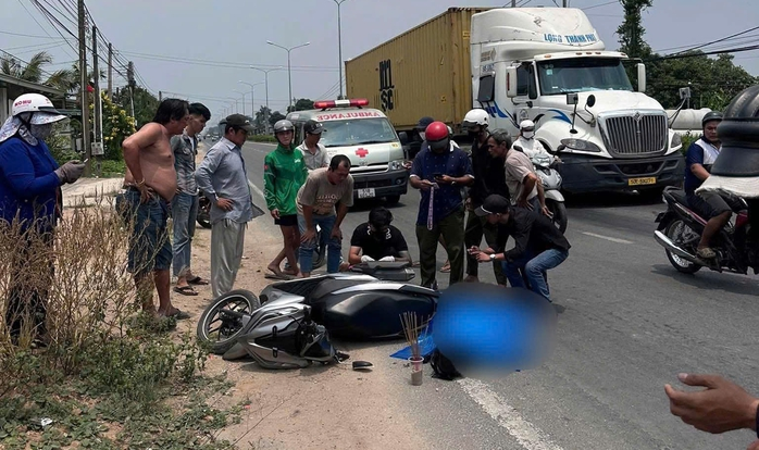 Chiếc xe container được xác định chạy lấn làn, tông vào xe máy khiến 3 người tử vong.