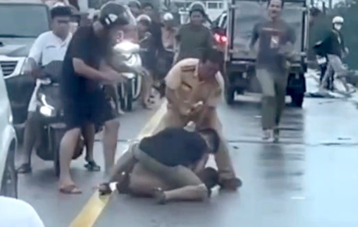 Trong lúc điều tiết dòng xe cộ đi tránh lũ, một CSGT ở Huế bất ngờ bị một thanh niên phê ma túy lao vào đánh đấm.