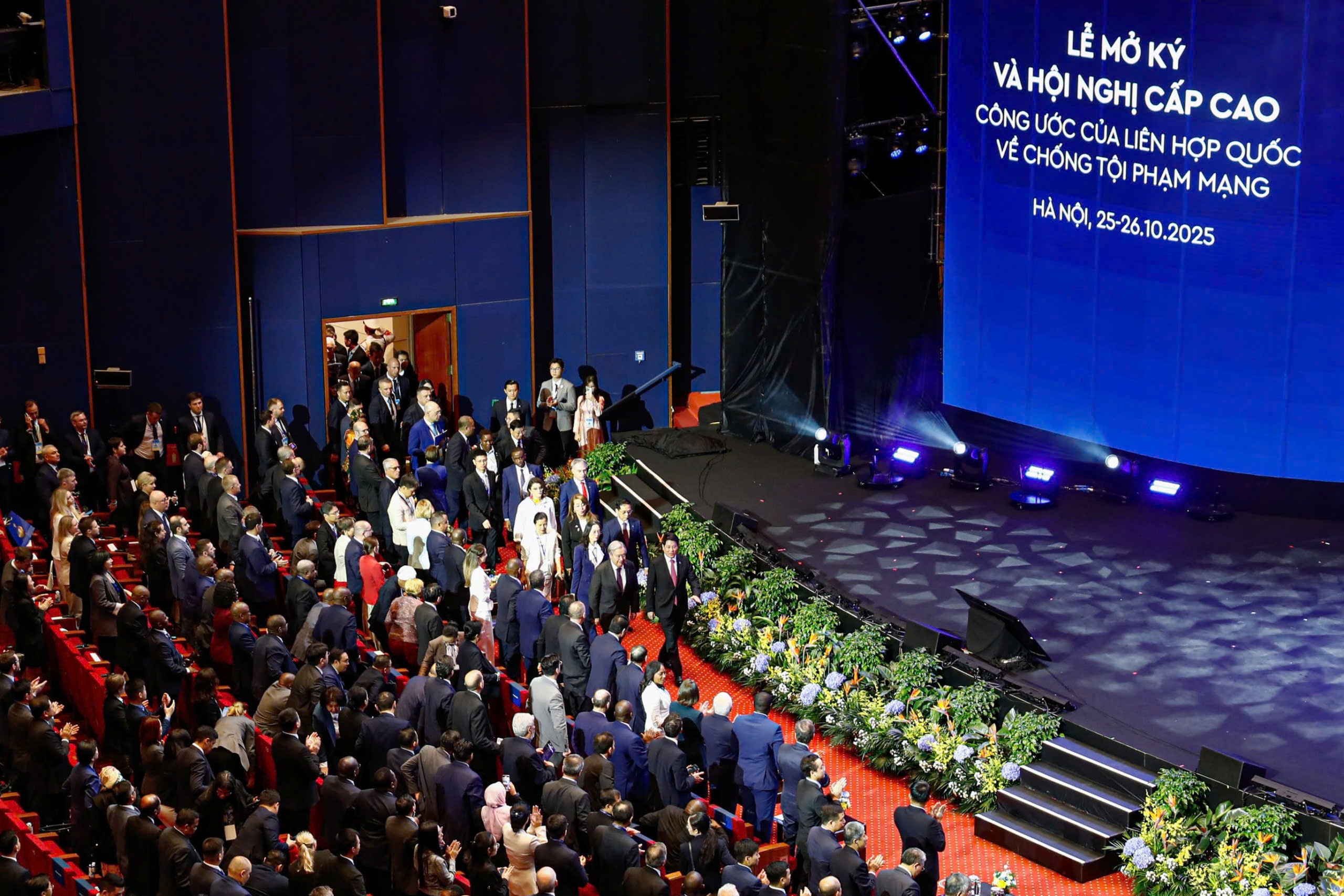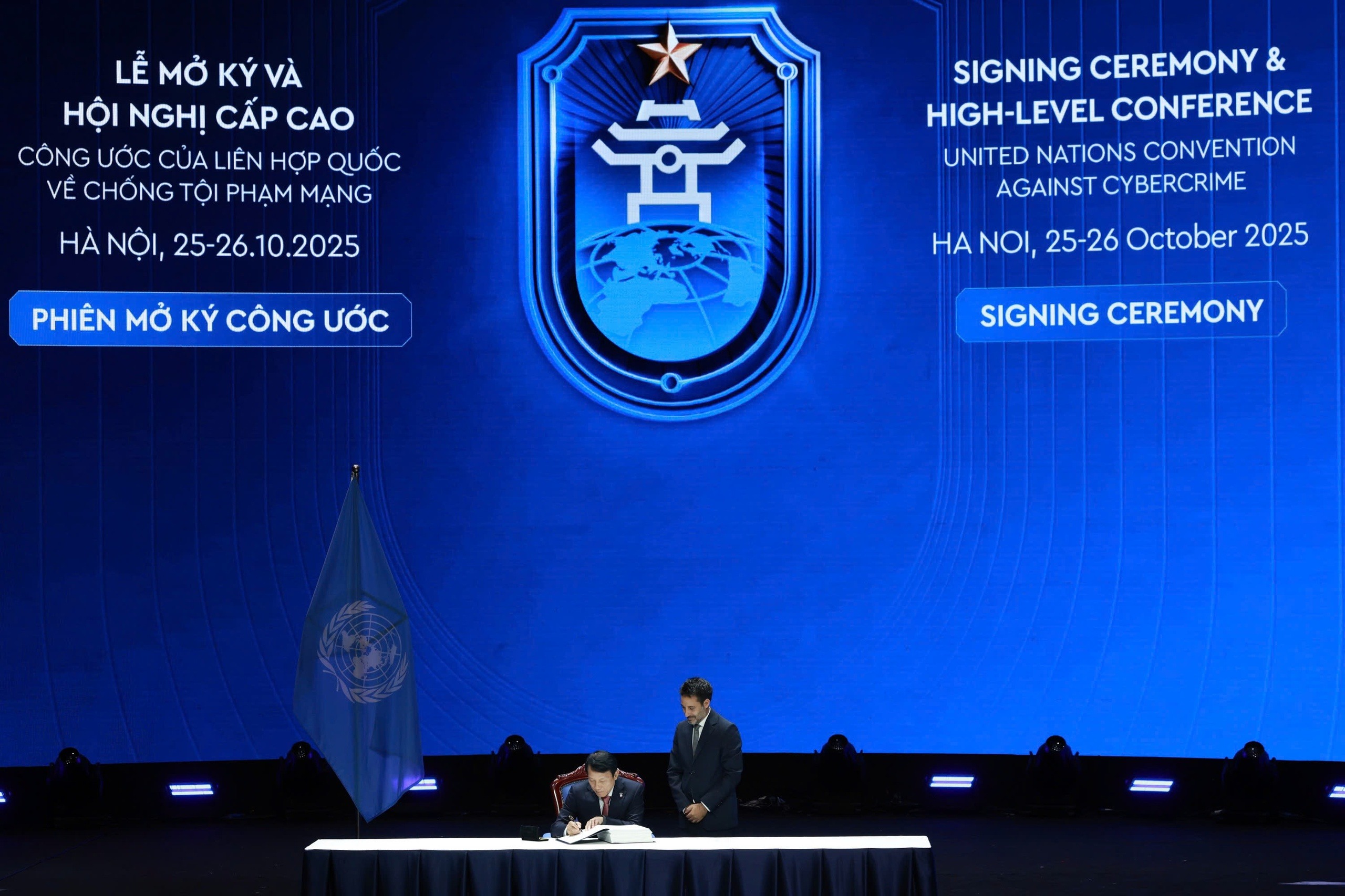 Ngày 25-10, tại Trung tâm Hội nghị quốc gia, Lễ mở ký Công ước của Liên hợp quốc (LHQ) về chống tội phạm mạng (Công ước Hà Nội) có chủ đề "Chống tội phạm mạng - Chia sẻ trách nhiệm - Hướng tới tương lai" chính thức được khai mạc dưới sự chủ trì của Chủ tịch nước Lương Cường và sự tham dự của Tổng Thư ký LHQ António Guterres.