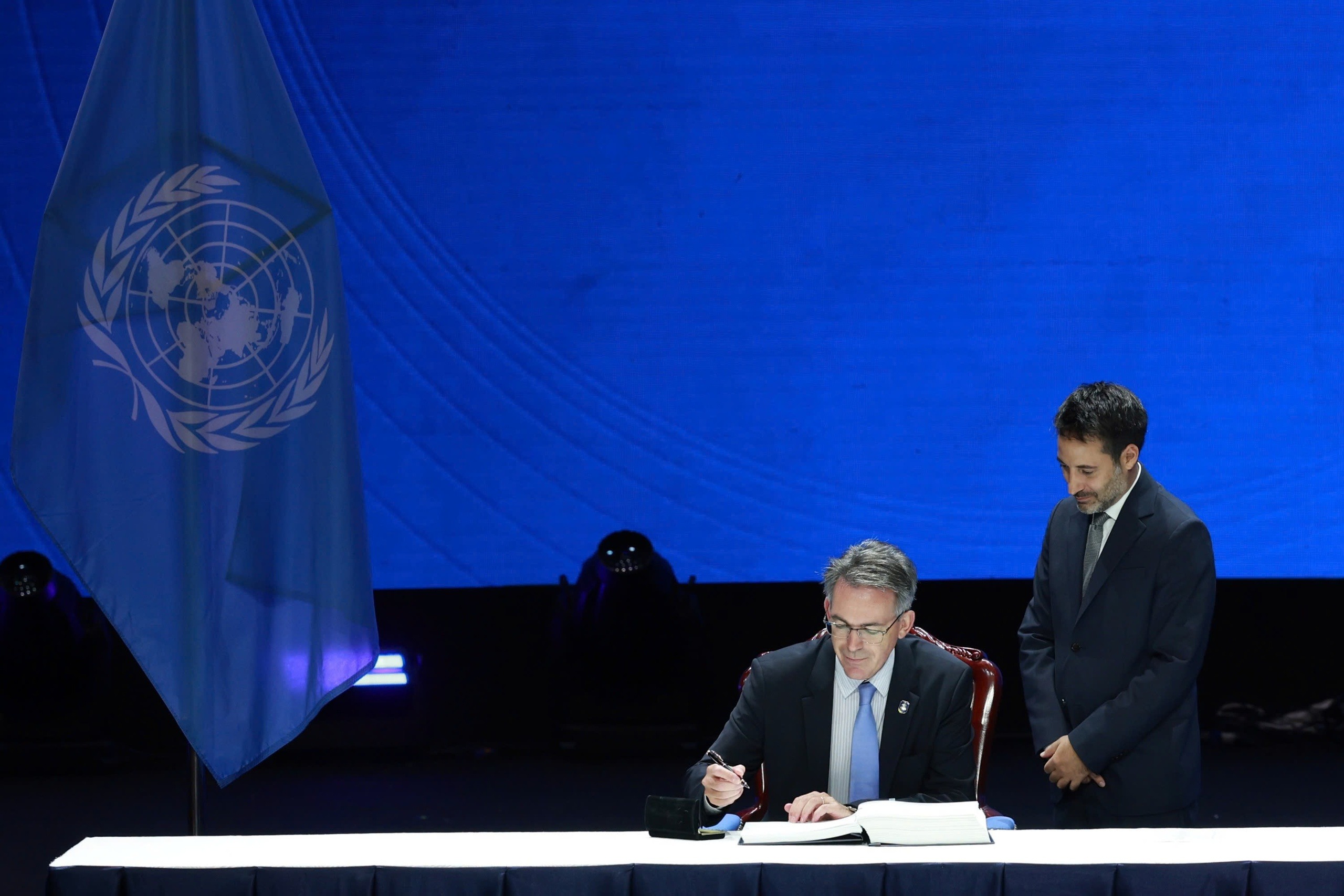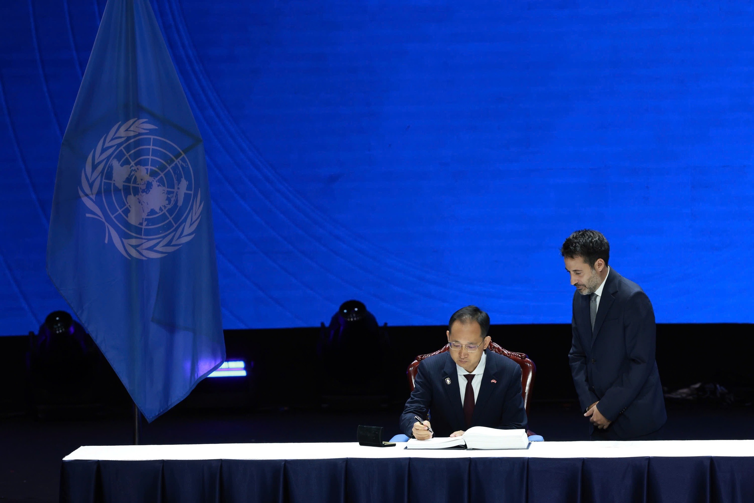 Sau Phiên khai mạc, Chủ tịch nước Lương Cường và Tổng Thư ký LHQ đã chứng kiến đại diện được ủy quyền của gần 70 quốc gia ký Công ước. Nghi lễ chính thức do Văn phòng Pháp lý LHQ (OLA) điều hành
