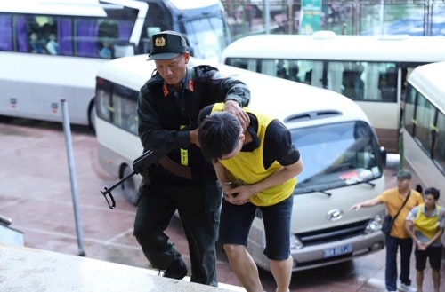 Cảnh sát di lý đối tượng trong đường dây lừa đảo hàng nghìn bị hại người Việt Nam. |