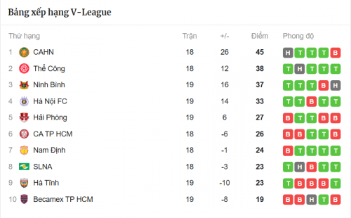 Trận thua khiến Hải Phòng bị ngắt mạch thắng hai trận. Họ dậm chân tại vị trí thứ năm với 27 điểm, hơn Công an TP HCM một điểm nhưng đá nhiều hơn một trận. Hà Tĩnh đứng thứ 9 với 23 điểm, hơn cuối bảng Đà Nẵng 11 điểm và cũng đá nhiều hơn một trận.