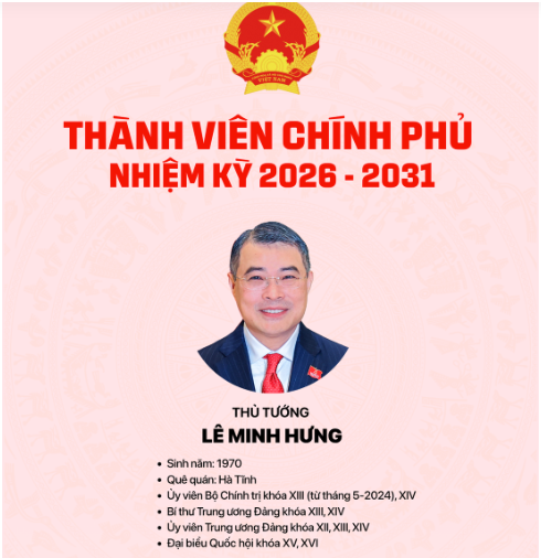 Thủ tướng Lê Minh Hưng và các Phó thủ tướng nhiệm kỳ mới - Ảnh: Nguyễn Khánh - Đồ họa: Ngọc Thành |