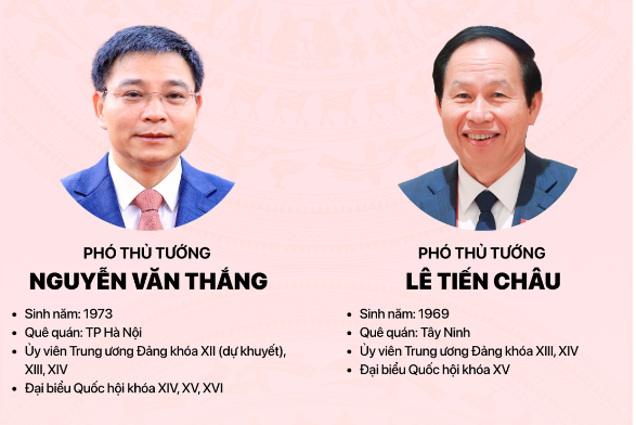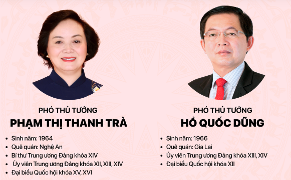 Như vậy, cùng với Thủ tướng Lê Minh Hưng, Chính phủ khóa mới có các Phó thủ tướng Phạm Gia Túc, Phan Văn Giang (Bộ trưởng Bộ Quốc phòng), Phạm Thị Thanh Trà, Hồ Quốc Dũng, Nguyễn Văn Thắng, Lê Tiến Châu.