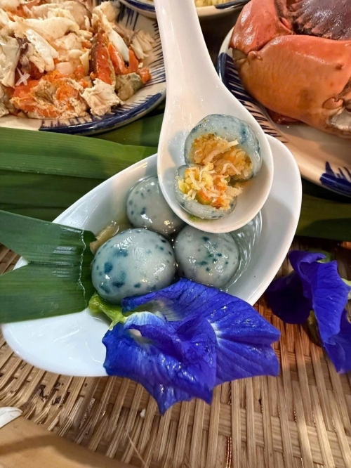"Chè cua thành phẩm có vị mặn của phần nhân, bên ngoài là lớp vỏ dẻo, thấm vị ngọt thanh của đường phèn. Món ăn hoàn toàn mất đi mùi tanh", đầu bếp Ái Linh khẳng định.