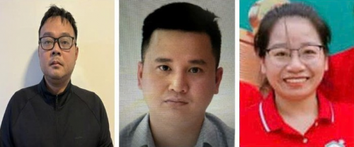 Các bị can (từ trái qua phải): Trịnh Quốc Khánh; An Văn Bắng và Nguyễn Thị Hương. Ảnh: Bộ Công an |