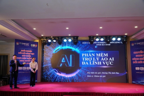 Giải nhất thuộc về dự án “Phần mềm trợ lý ảo AI đa lĩnh vực (chăm sóc khách hàng, hỗ trợ thủ tục hành chính cho chính quyền 2 cấp, chuyên môn y khoa, chuyên sâu tổng hợp báo cáo, OCR chuyển hình ảnh sang text, thư ký cuộc họp)” của nhóm tác giả Dương Thị Anh Thư, Nguyễn Thành Chinh, Hồ Thị Phương.