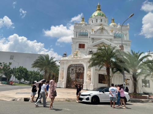 Bất chấp nắng gay gắt, nhiều người chụp ảnh trước dinh thự Ngân Collagen