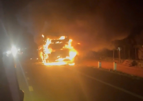 Xe khách giường nằm cháy ngùn ngụt trong đêm |