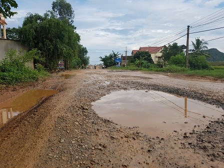 Đường đi vào xã Yên Lâm nhiều "ổ voi", "ổ trâu". |