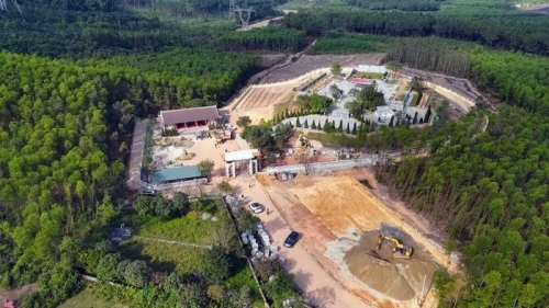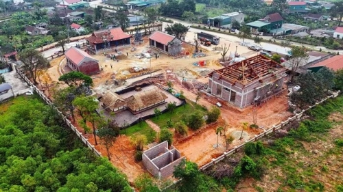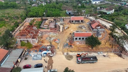 Dự án tu bổ, tôn tạo khu mộ và khu lưu niệm cố Tổng Bí thư Hà Huy Tập (xã Cẩm Hưng) đang được các đơn vị đẩy nhanh tiến độ thi công. (Ảnh: Hữu Quyết/TTXVN) |