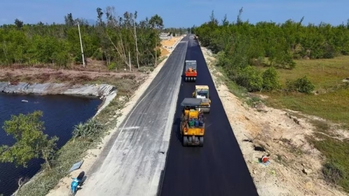 Dự án đường trục ngang ven biển Thạch Hà có tổng mức đầu tư 164 tỷ đồng. (Ảnh: Hữu Quyết/TTXVN) |