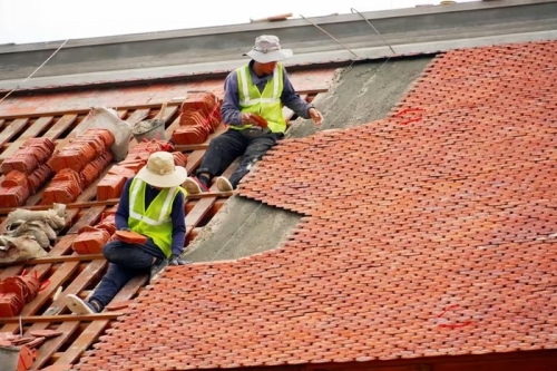 Công nhân thi công tại Dự án tu bổ, tôn tạo khu mộ và khu lưu niệm cố Tổng Bí thư Hà Huy Tập. (Ảnh: Hữu Quyết/TTXVN) |