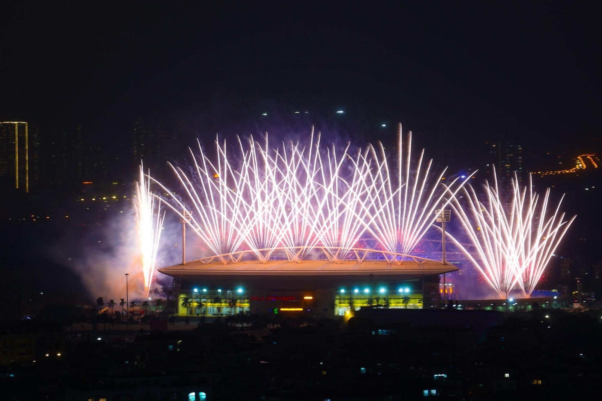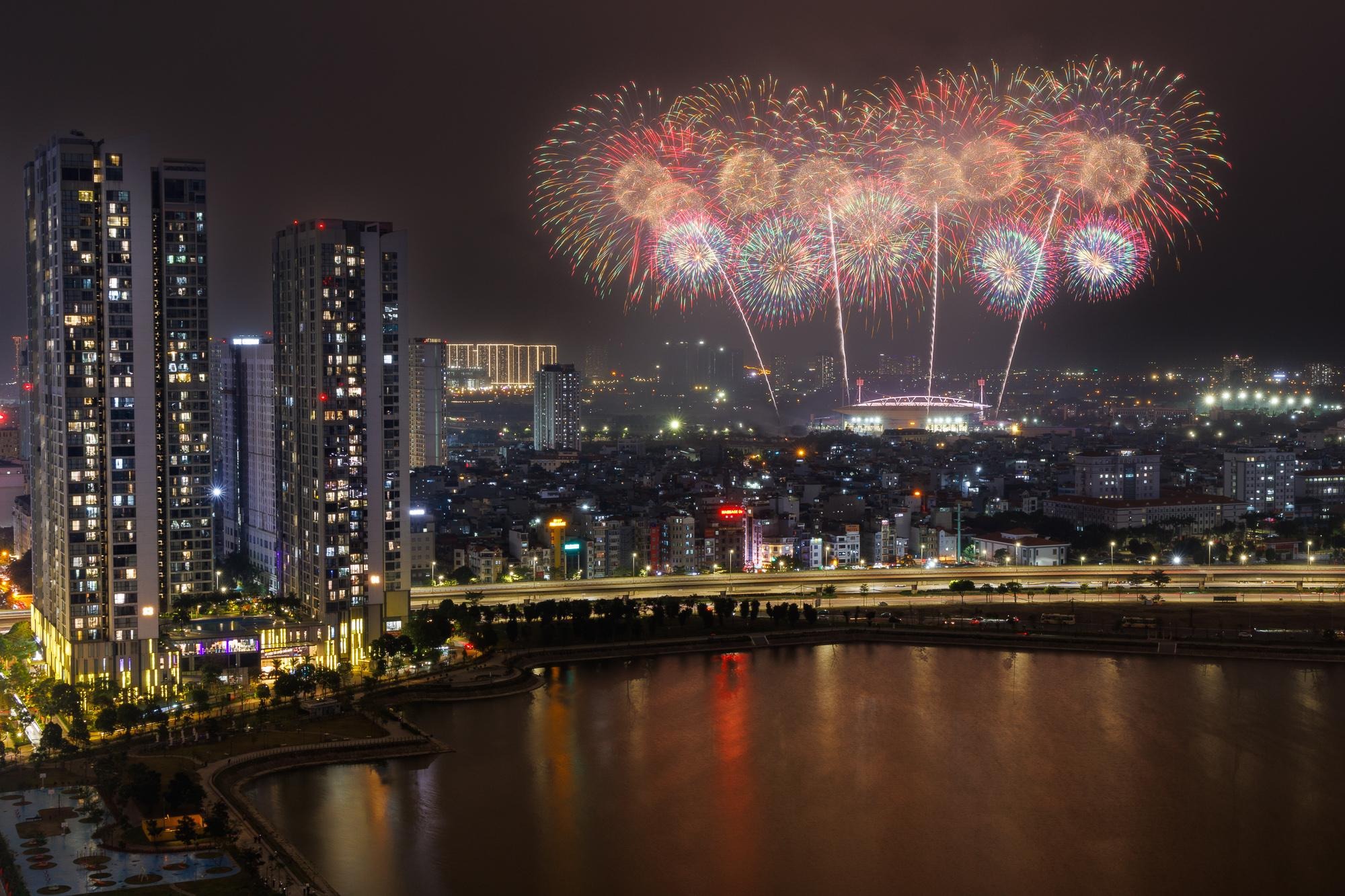 Tập đoàn Sun Group đã phối hợp chặt chẽ cùng Bộ Tư lệnh Thủ đô và Công ty TNHH Một thành viên Hóa chất 21 (Z121) để xây dựng, triển khai trận địa pháo hoa tại khu vực SVĐ quốc gia Mỹ Đình. Trong đó, 950 giàn phun pháo hoa và 4.400 ống pháo hoa hỏa thuật được lắp đặt trực tiếp trên mái nhà và hai bên cánh khán đài B theo địa hình vòng cung. Bên ngoài sân là trận địa 4.600 pháo hoa nổ tầm cao được bố trí từ nửa đường Lê Đức Thọ qua cột đồng hồ đến bãi đất trống trước Cung thể thao dưới nước, phường Từ Liêm.