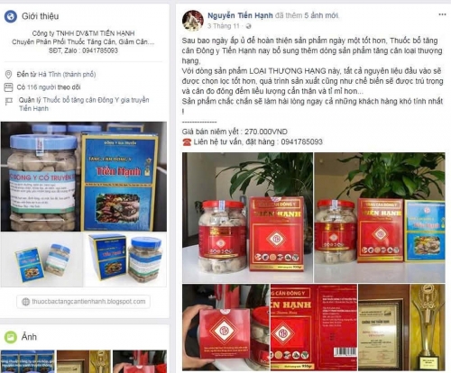 Thuốc giả thương hiệu Tiến Hạnh được quảng cáo công khai trên các trang mạng. Ảnh: NT |