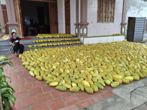 Số dưa bở được tập kết về sân nhà chị Phan Thị Mong tại thôn Vân Thanh Bắc, xã Cổ Đạm, chiều 16/4. Ảnh: Hội Liên hiệp Phụ nữ xã Cổ Đạm |