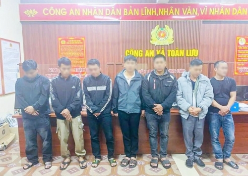 Các đối tượng bị bắt giữ gồm: Dương Đình Vũ (25 tuổi), Trần Văn Ánh (34 tuổi), Đào Viết Độ (32 tuổi), Biện Văn Mỹ (37 tuổi), Trần Văn Đức (35 tuổi), Biện Văn Phi (40 tuổi) và Dương Văn Hoài (40 tuổi), tất cả cùng trú tại thôn Xuân Sơn.
