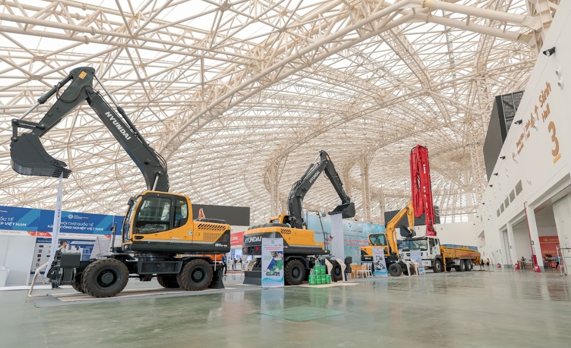 Bước vào phân khu này, khách tham quan sẽ choáng ngợp bởi quy mô của các "gã khổng lồ". Những cỗ máy công trình hạng nặng của Hyundai, XCMG và các dòng xe lu Ammann/Hitachi án ngữ tại vị trí trung tâm, phô diễn “sức mạnh cơ bắp”.