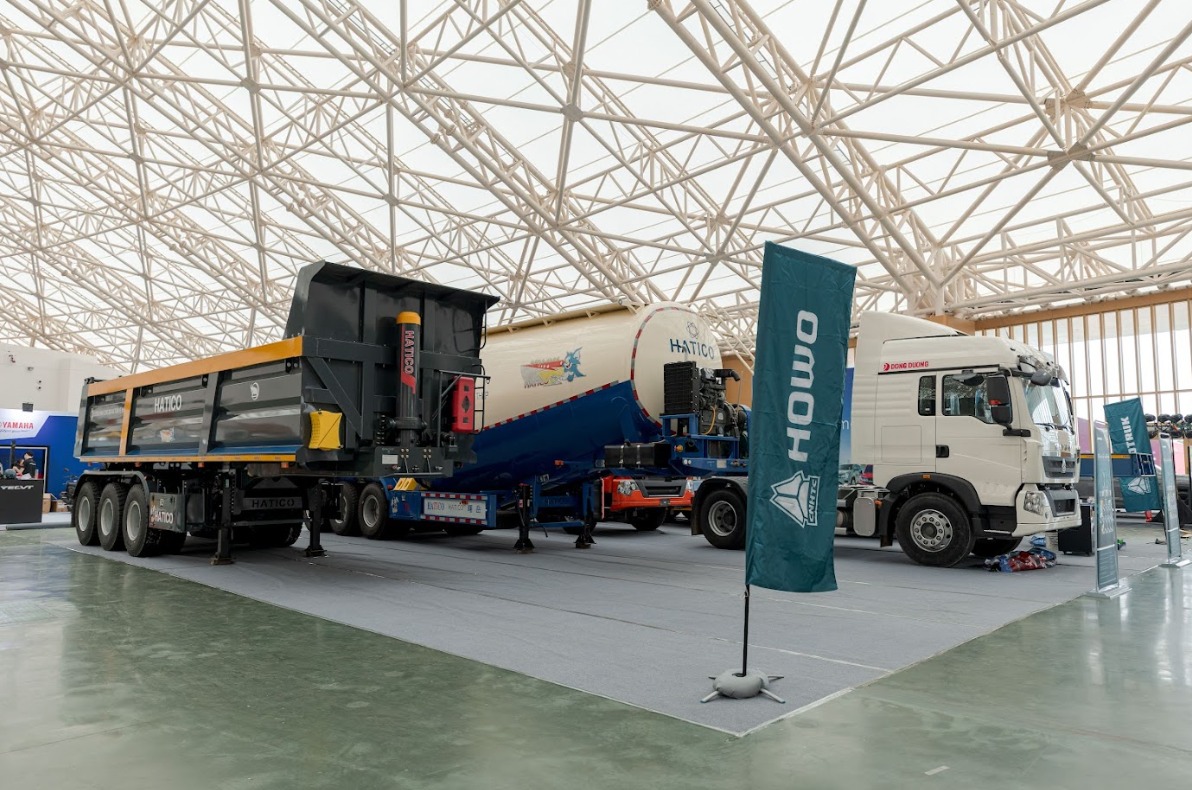 Ngành vận tải cũng không kém cạnh với dàn xe đầu kéo Howo và rơ-moóc chuyên dụng của Hatico. |