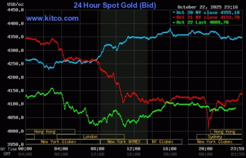 Đêm qua, giá vàng thế giới có lúc giảm gần 100 USD/ounce và về sát 4.000 USD/ounce. Đến trưa nay, 23-10, giá vàng thế giới đã hồi phục trở lại về mức 4.083 USD/ounce.