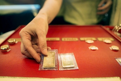 Do giảm chậm hơn nên hiện giá vàng miếng SJC đang cao hơn giá vàng thế giới đến 18,9 triệu đồng/lượng - Ảnh: THANH HIỆP |
