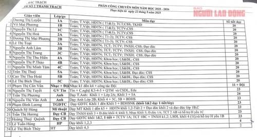 Danh sách phân công chuyên môn năm học của Trường thì việc giảng dạy của Hiệu trưởng và Phó Hiệu trưởng không có lịch cố định, không xác định rõ môn học, tiết học, không xây dựng kế hoạch dạy học và bài soạn theo quy định... |