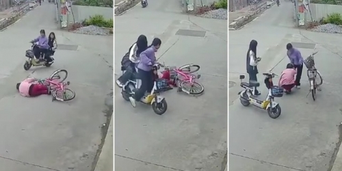 Khi đang đi xe máy điện, Wang Ziqing, 14 tuổi, và Zhu Jiayuan, 15 tuổi, đã chứng kiến cụ và ngã xuống đất. Cả hai lập tức dừng lại và lao đến giúp người phụ nữ đứng dậy. Tuy nhiên, hành động tốt bụng của hai cô gái chẳng mấy chốc lại nhận được kết quả bất ngờ.