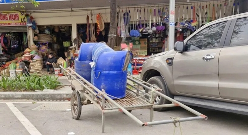Một số vị trí xe tự chế dừng đỗ ngay tại điểm chỉ dành riêng cho xe ô tô, dễ xảy ra va quyệt, xây xước nếu người điều khiển xe máy kéo xe tự chế không chú ý quan sát khi ra vào. |
