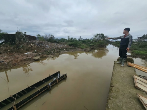 "Hiện nay đang mùa mưa chưa thi công được, nhà thầu đã có phương án đặt cống tạm để bà con đi lại sản xuất vụ đông xuân", đại diện công ty Vạn An trao đổi.