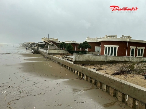 Những căn villa không có kè chắn phía trước bị đổ sập sau bão. Ảnh: HN. |