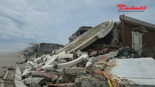 Hàng chục căn villa trên bãi biển của Dự án Khu dịch vụ và nhà ở Xuân Thành đổ sập sau bão số 10. Ảnh: HN. |