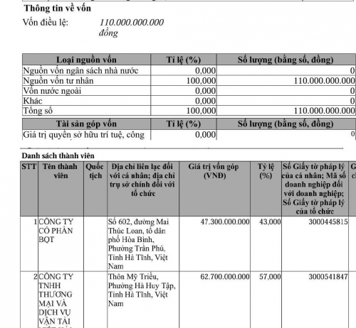 Công ty TNHH Đầu tư khu đô thị Hàm Nghi được thành lập năm 2021 với vốn điều lệ ban đầu 85 tỷ đồng, sau đó tăng lên 110 tỷ đồng. |
