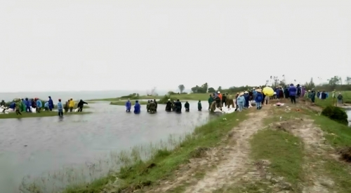 Sau nhiều giờ nỗ lực khắc phục, đoạn đê bao đã được gia cố.