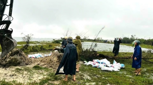 Hàng trăm người dân, lực lượng chức năng được huy động khắc phục sự cố. Ảnh: TK. |