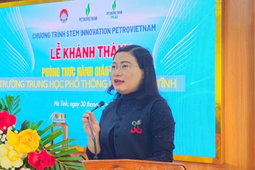 Phát biểu tại buổi lễ, bà Nguyễn Thị Nguyệt - Phó Chủ tịch UBND tỉnh Hà Tĩnh đánh giá cao sự hỗ trợ của Petrovietnam và khẳng định đây là niềm động viên to lớn để trường THPT Chuyên Hà Tĩnh tiếp tục giữ vững vai trò đơn vị tiên phong, dẫn dắt chuyên môn trong hệ thống giáo dục tỉnh nhà.
