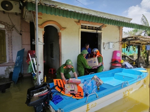Để đảm bảo cuộc sống cho người dân, chính quyền, lực lượng Công an xã Đức Minh đã phối hợp với các nhà hảo tâm trên địa bàn cung cấp lương thực, nhu yếu phẩm, các vật dụng cần thiết cho bà con vùng lũ.