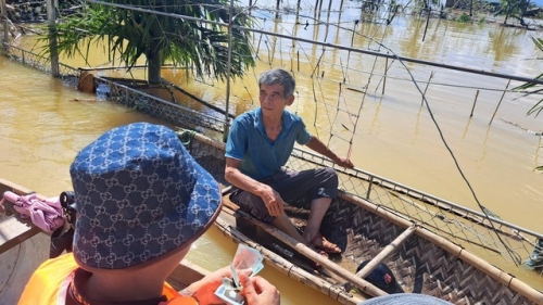 Thuyền trở thành phương tiện di chuyển, nơi sinh hoạt của bà con thời điểm này. Là thương binh hạng 2/4, bị khuyết tật 1 chân, ông Lê Xuân Hạp (thôn Quang Lộc, xã Đức Quang) cho biết, việc di chuyển càng trở nên chật vật trong những ngày nước lũ dâng cao.