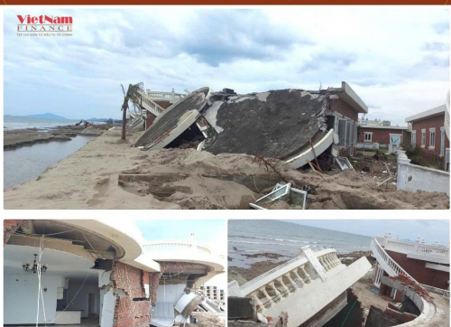 Tuy nhiên, đến cuối tháng 9/2025, khi bão Bualoi đổ bộ vào khu vực biển Xuân Thành (xã Tiên Điền), hàng loạt biệt thự ven biển tại dự án đã bị sập đổ. Ghi nhận cho thấy nhiều căn nhà bị phá hủy hoàn toàn, chỉ còn lại nền móng; tường nứt, mái tốc, kết cấu bê tông gãy vỡ, hạ tầng nội khu bị cuốn trôi.