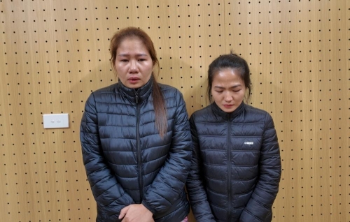 Lương Trần Thùy Trang (bên trái) và Bùi Thị Búp là 2 đối tượng chủ chốt, nhập thuốc lá giả từ Campuchia về |