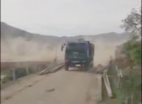 Tuyến đường này có trọng tải 13 tấn, tuy nhiên giờ đây nó đang phải "oằn mình" gánh những chiếc xe gần 30 tấn |